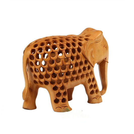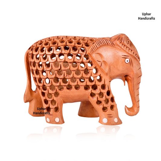 Wood Handmade Elephant Undercut Statue Animal Figurines Showpiece