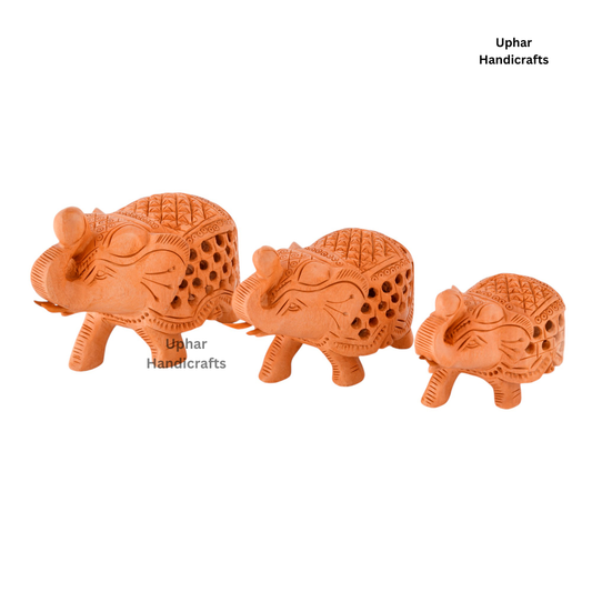 Handcrafted Wooden Elephant Jali Set of 3 | Home Decor Showpiece for Living Room, Shelf & Gift