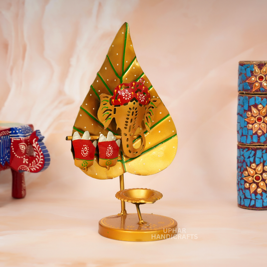Ganesh Pan Patta Metal Tea Light Holder Handcrafted Diya Stand for Indian Home Decor & Diwali Gifting