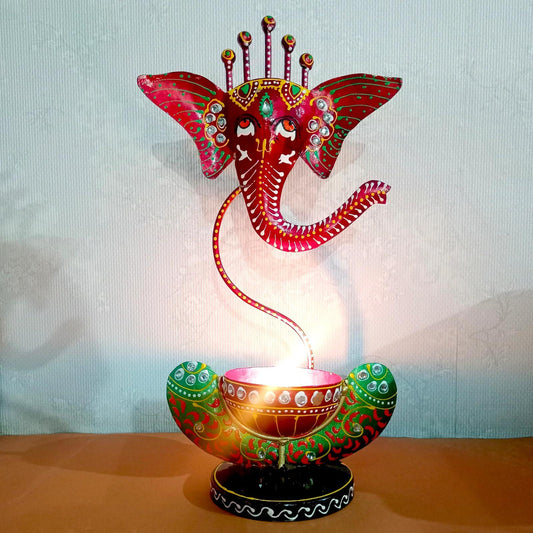 Lord Ganesh Pan Patta Metal Tea Light Holder Handcrafted Diya Stand Indian Festival & Pooja Decor