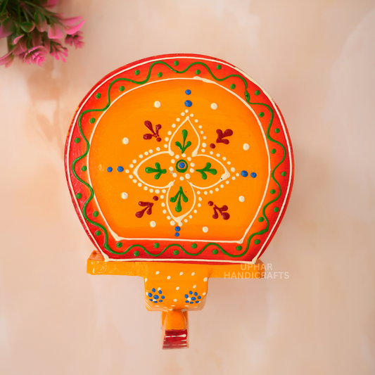 Hand Painted Wooden Elephant Tealight Candle Holder Indian Folk Art Home Décor Accent for Living Room, Patio, or Tabletop