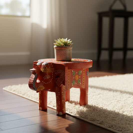Mini Hand Painted Wooden Elephant Stool for Boho Home Decor