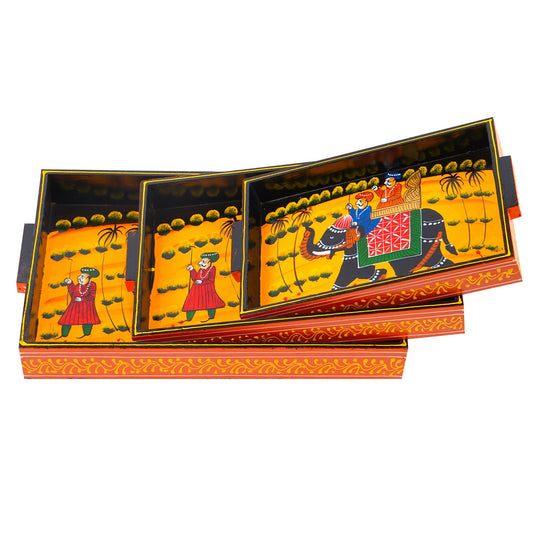 Handcrafted wooden serving tray in thela style for Kitchen and Dining