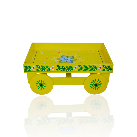 Wooden Handpained Thela Serving Table Trolley Yellow