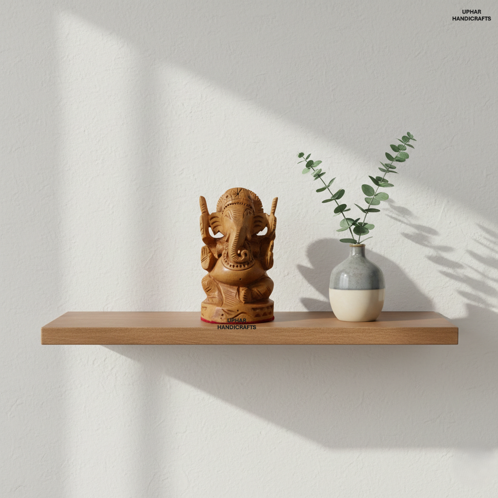 Hand-Carved Wooden Ganesh Statue (3 Inch) Lord Ganesha Idol for Home Decor, Puja & Meditation