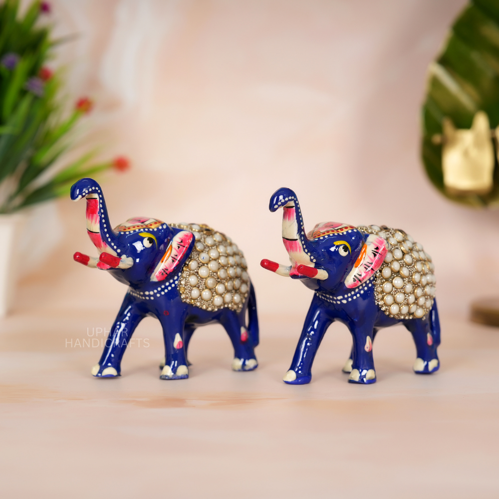 Hand Painted handwork Metal elephant for home decor and gifting Set of 2