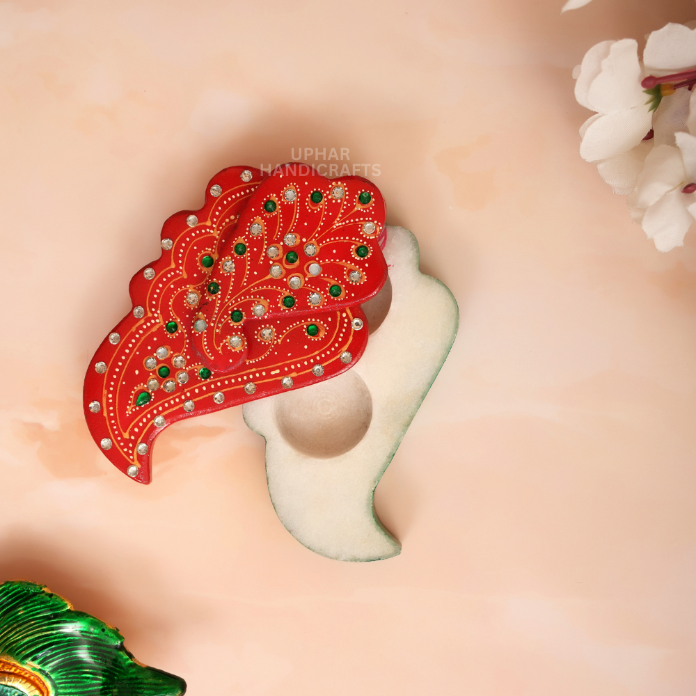Marble Kumkum Holder with Hand Painting | Elegant Rajasthani Artwork & Kundan Stones Chopra for Temple & Festive Decor