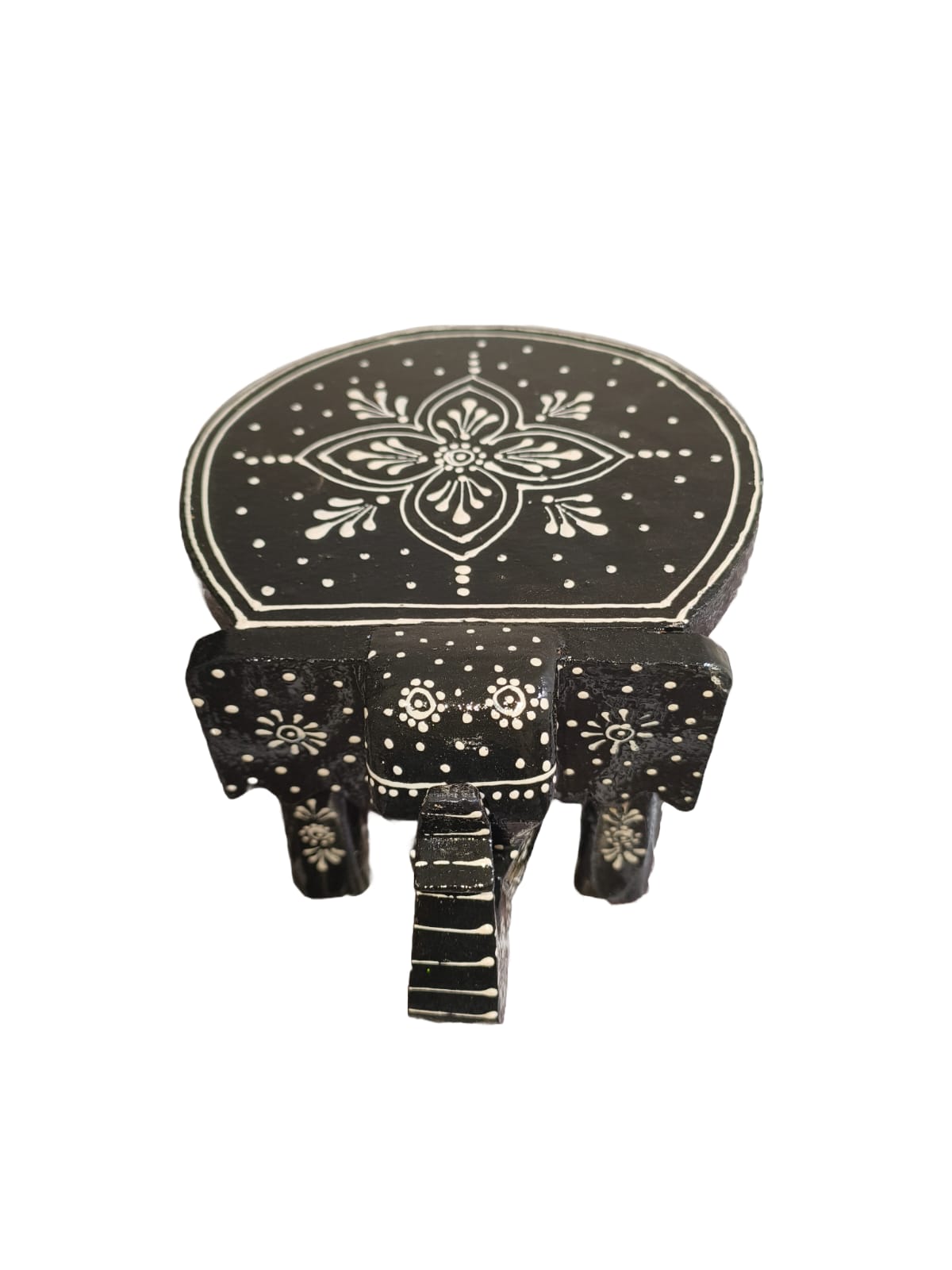 Mini Hand printed Wooden Elephant Stool For Boho Home Decor